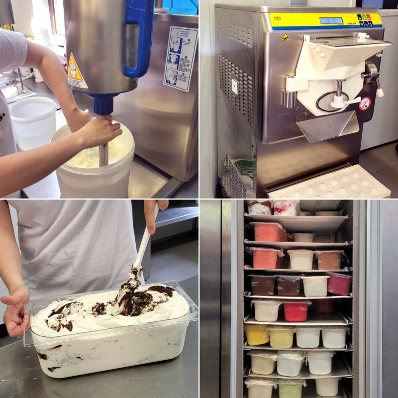 Hilfen der Lebensmittelindustrie lehnt Anna Bauer ab. Sie setzt auf beste Zutaten, Handwerk und Erfahrung. Für ihr Ziel, die natürlichen Aromen unverfälscht zur Geltung zu bringen, verwendet sie einen ungewöhnlich hohen Fruchtanteil. Das Ergebnis sind geschmacklich intensive Sorbets und Milcheise mit klarer Typik und perfekter Textur.