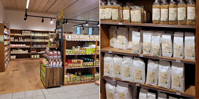 Der großzügige, 2022 neu gestaltete Klosterladen bietet einen Überblick über die vielfältige eigene Produktion. Ergänzt wird mit regionalen Waren, um ein abgerundetes Angebot zu ermöglichen.
