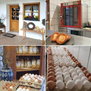 Angelika Hüttner legt großen Wert auf die Herkunft ihrer Zutaten. Die Eier stammen vom eigenen Hof, das Mehl kommt aus der regionalen Kreuzermühle. Obst, Gemüse und Kräuter wachsen im eigenen Garten. Aus diesen einfachen, ehrlichen Zutaten entstehen die Backwaren, für die sie auf dem Bauernmarkt so geschätzt wird.
