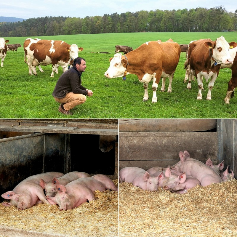 Das beginnt mit einem umsichtigen Futteranbau, setzt sich fort mit großzügiger Weidehaltung und einer modernen Melkanlage. Auch die Schweinezucht garantiert Tierwohl und gute Qualität gleichermaßen.