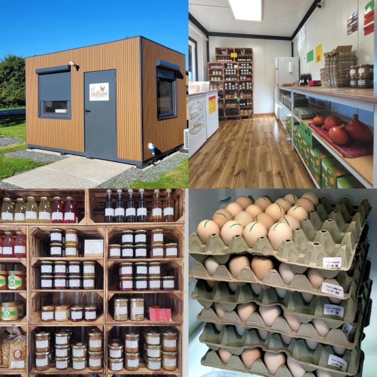 Saskia Ehmann kümmert sich hingebungsvoll um den kleinen Hofladen. Neben den Bio-Eiern, Suppenhühnern und Eierlikör bietet sie eine Vielzahl handwerklicher Marmeladen, Kompotts und Säfte vom Hof an. Dazu kommen Nudeln, Wurstwaren, Honig und Eis vom Biohof Lang.