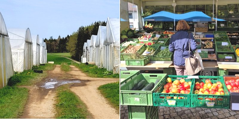 Mit einem umfangreichen Angebot an Gemüse, Obst und Jungpflanzen sind die Steinhilbers auf 6 Wochenmärkten der Gegend präsent. Abo-Kisten ergänzen das Angebot. Fritz Steinhilber freut es, dass seine Tochter Jutta in seine Fussstapfen getreten ist und die Übergabe bereits ins Auge gefasst ist.