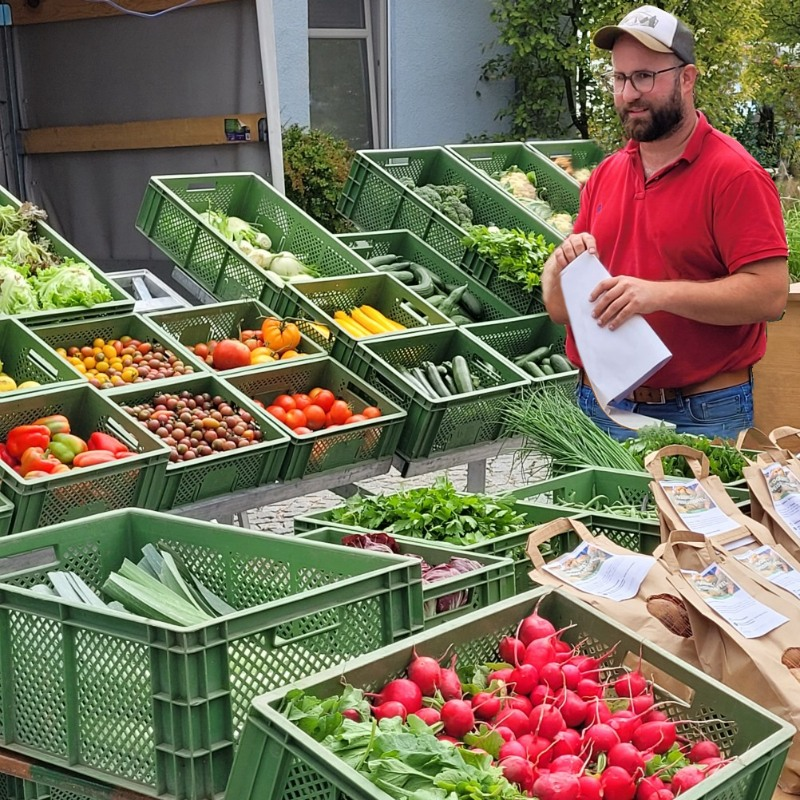 Sabine und Elmar Alt bewirtschaften den 30-ha-Hof in Auburg biologisch und regenerativ. Sie sichern damit Humusaufbau und Fruchtbarkeit ihrer für vielfältigen Gemüseanbau bestens geeigneten Böden. Je nach Saison sind Salate, Tomaten (7Sorten), Spitzpaprika, Auberginen, Zwiebeln und weitere Wurzelgemüse im Sortiment. Kartoffeln wie die exzellente Sorte Alexandra runden das Angebot ab.
