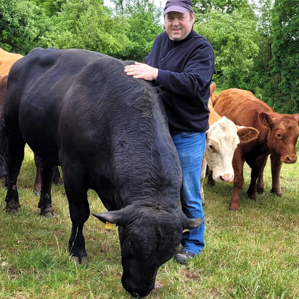 Gras und Heu – mehr braucht die Aberdeen Angus Herde nicht, welche als freilaufende Mutterkuhherde 1500 Meter Auslauflänge beanspruchen darf. Meist weiß nicht einmal der Bauer, wo sie gerade ist ..