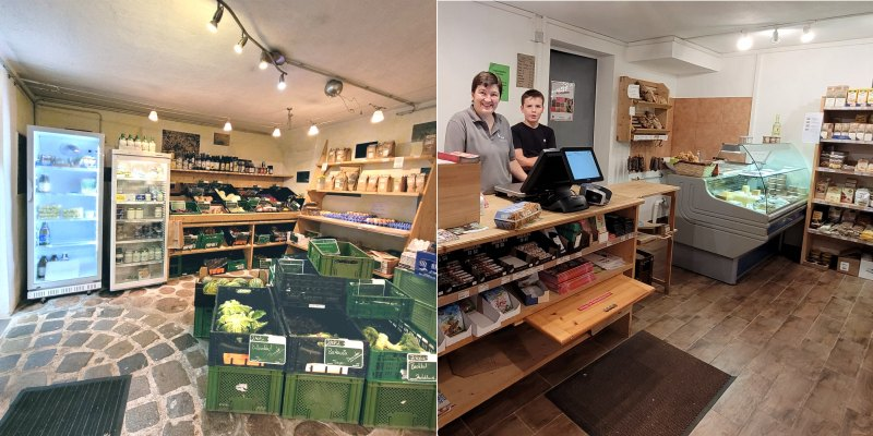 Der Hofladen hat freitags und samstags geöffnet. Dort findet sich ein breites Sortiment vom eigenen Hof und von befreundeten Biobauern.