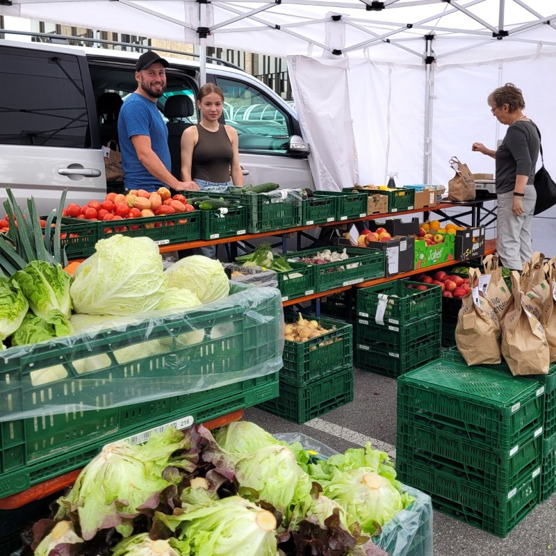 Der Marktstand Samstag Vormittag im Gewerbepark ist immer gut besucht. Das Gemüse ist auch beim Kollerhof und Radis&Bona erhältlich.