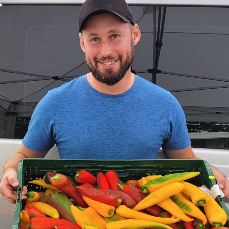 Dominik Heitzer ist seit 2016 Mitglied bei Bioland. Er widmet sich auf 40 ha dem nachhaltigen Gemüse- und Feldfrüchteanbau und hat sich damit einen guten Ruf erworben. Für den Direktverkauf baut er Kartoffen, Salate, Zwiebel, Karotten, Tomaten, Rote Beete, Süßkartoffeln, Knoblauch, u.a. an. Das Hühnermobil bevölkern derzeit ca. 160 Hühner.
