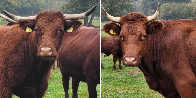 links Salers – rechts Rotes Höhenvieh