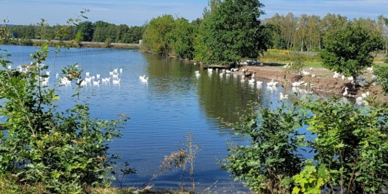 Als weiteres Standbein werden auf den eigenen Flächen Freilandgänse in exzeptioneller Qualität gehalten.
