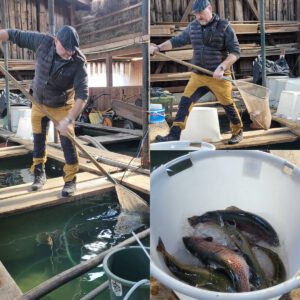 Adreas Rösch führt bei Bärnau in vierter Generation eine ganz besondere Forellenzucht, die als Kategorie 1 zertifiziert und als staatlicher Beispielbetrieb beurkundet ist. Seit 1880 widmet sich die Familie den Bachforellen, inzwischen sind hier nahezu alle Salmonidenarten vertreten. Diplom-Biologe Andreas Rösch setzt sich für eine möglichst große Artenvielfalt ein. Das zeigt die beeindruckende Bestellliste seiner Homepage mit Bachforellen, Regenbogenforellen, Lachsforellen, Goldforellen, Seeforellen, Tigerforellen, Bachsaiblinge, Seesaiblinge, Seesaiblinge arktisch, Elsässer Saiblinge, Goldsaiblinge, Huchen, Äschen und Renken.