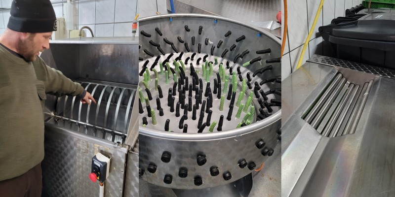 Die vielen Masthühner (ISA757) leben in mobilen Ställen inmitten großzügiger Grünflächen. Alle Tiere werden im Hof geschlachtet und verarbeitet. Auch den Vertrieb behält man in der Hand.
