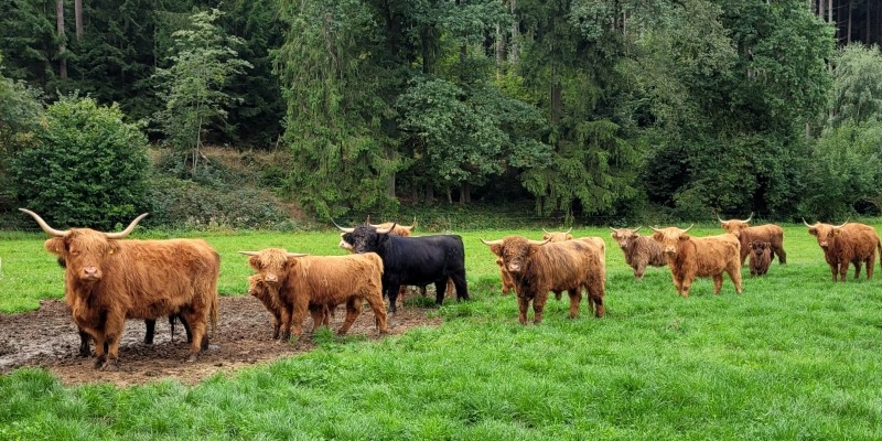 Ganzjährig auf der Weide, Mutterkuhhaltung selbstverständlich.