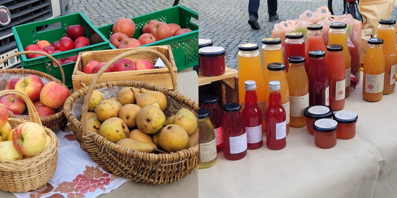 An Manuela Pilhofers kleinem Stand auf dem Amberger Bauernmarkt sollte man nicht achtlos vorbeigehen. Hier hat man die Gelegenheit, Säfte und Marmeladen von hervorragender Qualität zu erwerben. Die Streuobstwiese, die ihr Mann 1998 angelegt hat, beherbergt besondere alte Apfel-, Birnen- und Quittensorten, die bereits 1912 für die Oberpfalz empfohlen wurden. Diese Wiese wird mit viel Liebe gepflegt und kontinuierlich erweitert. Zudem gibt es eine Vielzahl von Beerensorten.