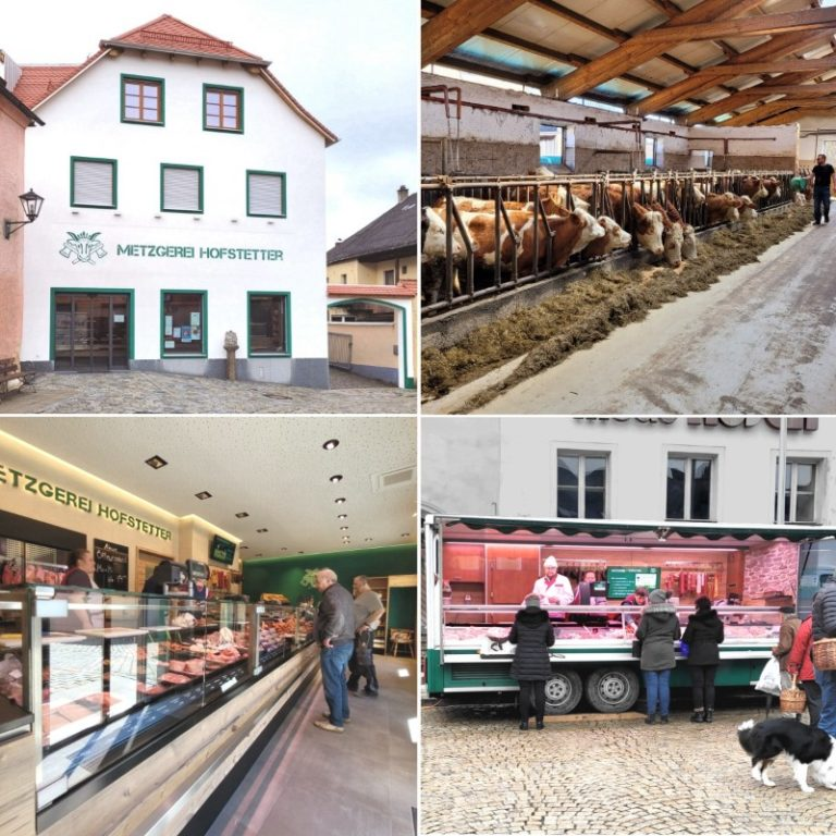 Das Hofstetter´sche Konzept ist seit bald 200 Jahren erfolgreich: Landwirtschaft + Metzgerei. Die Rinder kommen aus dem eigenen Stall, die Schweine von einem befreundeten Bauern der Region. Geschlachtet wird in den modernen eigenen Räumen. Mit Stolz gibt Senior Martin Hofstetter Auskunft: „Alles, was in der Kühltheke liegt, ist von uns selbst gemacht; Fremdware kommt mir nicht ins Haus!“