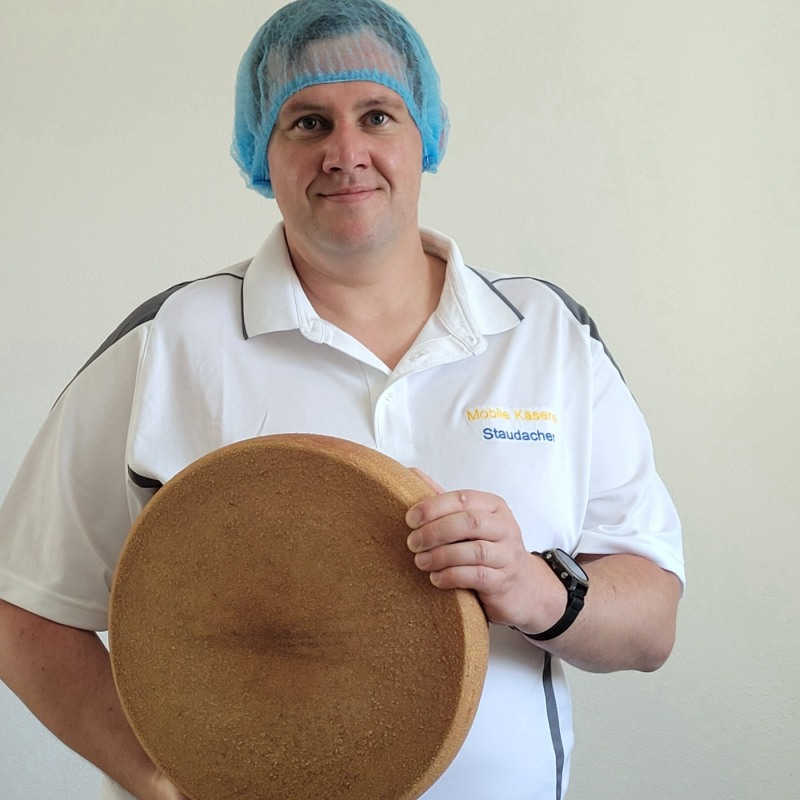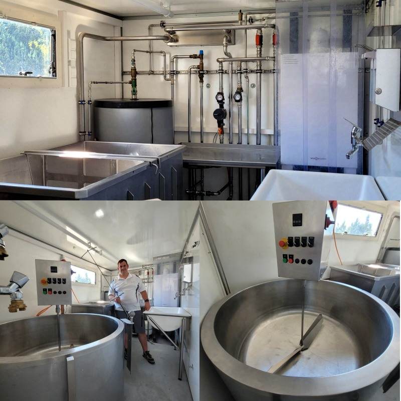 Der Traum des erfahrenen Molkereifachmanns Michael Staudacher war es lange, aus Heumilch besten Rohmilch-Bergkäse mit langer Reifezeit herzustellen. Nun hat er den Mut gefasst, diese Vision in die Tat umzusetzen, und sich über die erforderliche Investition getraut. Er gründete eine mobile Käserei, ausgestattet mit einem Spezialanhänger, der alle notwendigen Gerätschaften enthält.