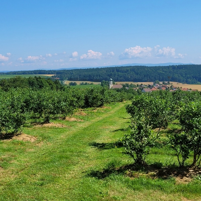 Brigitte und Max Spießl betreiben seit 2003 ein Heidelbeerfeld in wunderschöner Lage über Michelsneukirchen. Spontan beeindruckt beim Besuch die kerngesunde Ausstrahlung der Sträucher.